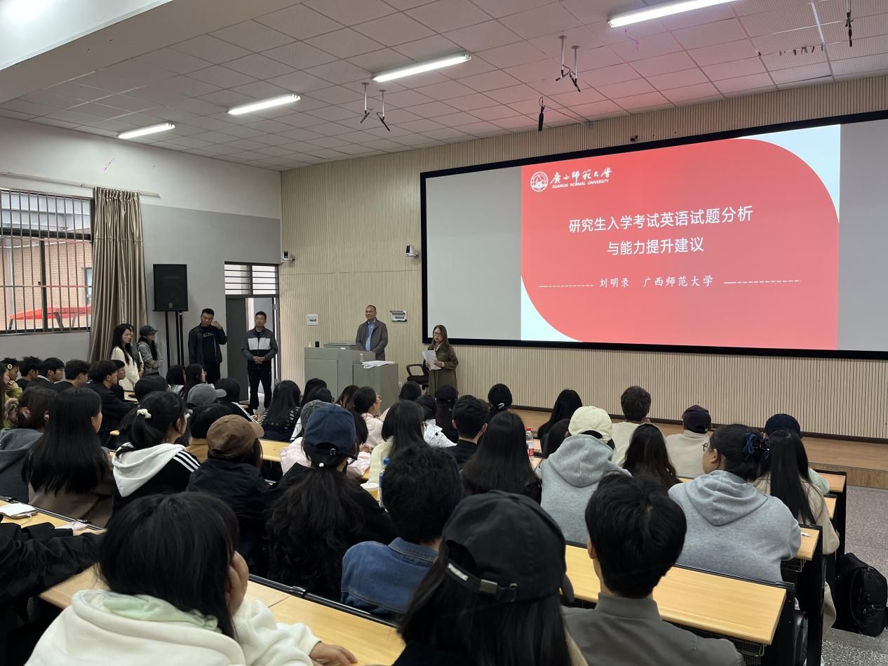 为提升美术学院考研学生英语备考能力,增强考研竞争力,2025年10月11日,美术学院特别邀请广西师范大学外国语学院副院长刘明录教授(二级教授、八桂学者),为美术学院学生开展考研英语备考讲座。刘明录教授深耕英语教学与研究领域,拥有深厚的学术造诣和丰富的实战经验。讲座中,刘教授系统性地对考研英语的各类题型进行了深度剖析,层层拆解其中的命题规律与解题关键。他不仅分享了高效的解题策略与技巧,更根据题型特点与分值权重,...