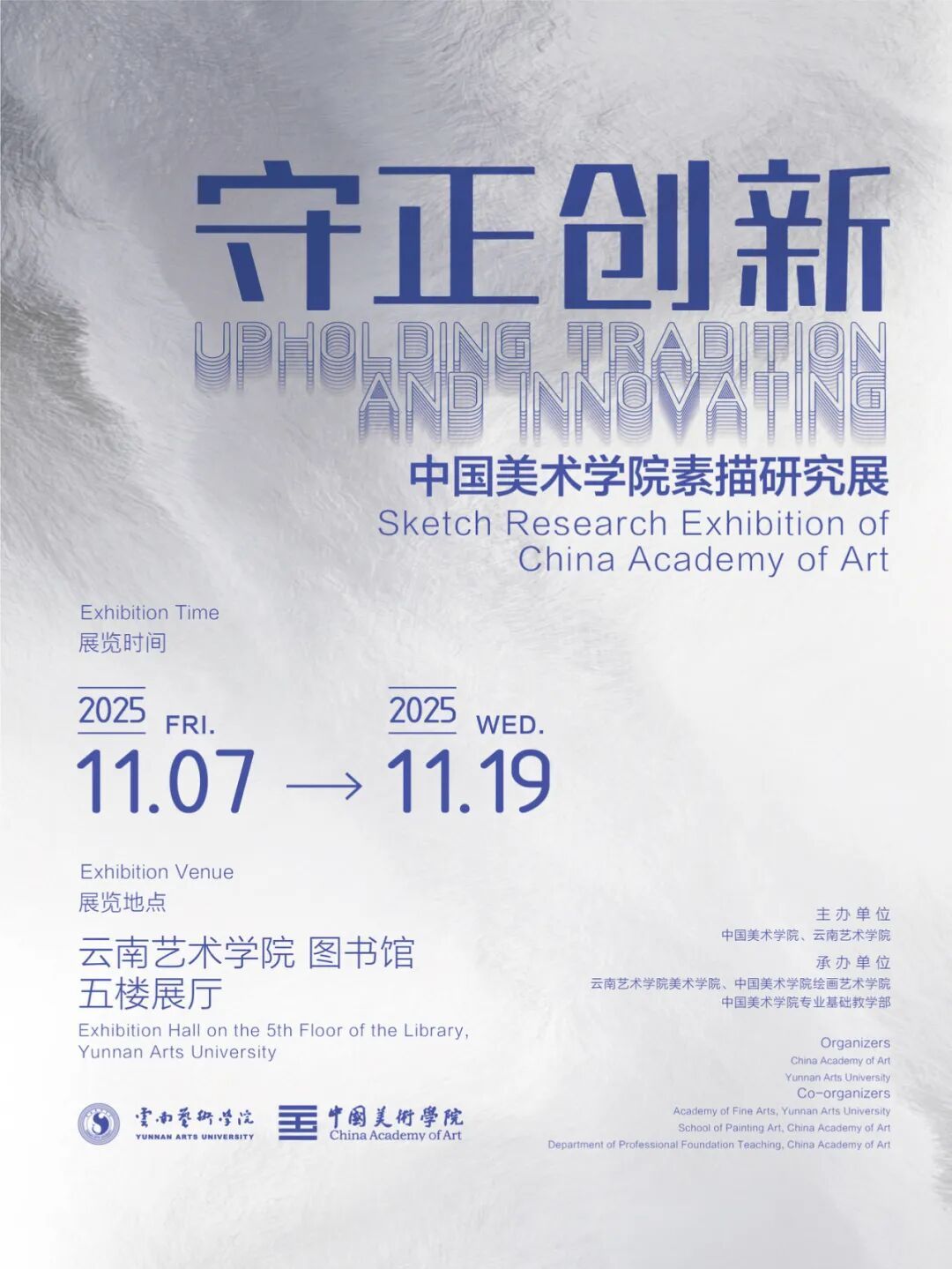 “守正创新——中国美术学院素描研究展”将于 2025年11月7日上午10:00在云南艺术学院图书馆正式拉开帷幕。本次展览由中国美术学院、云南艺术学院主办,中国美术学院绘画艺术学院、中国美术学院专业基础教学部、云南艺术学院美术学院承办,中国美术学院绘画艺术学院油画系、云南艺术学院美术学院油画系协办,将系统呈现中国美术学院在素描教学与研究上的深厚积淀与当代思考。展览展出油画系系藏素描精品及专业基础教学部作品,油画系作品囊括了自1928年国立艺术院西画系创建至今的优秀系藏学生作品,...