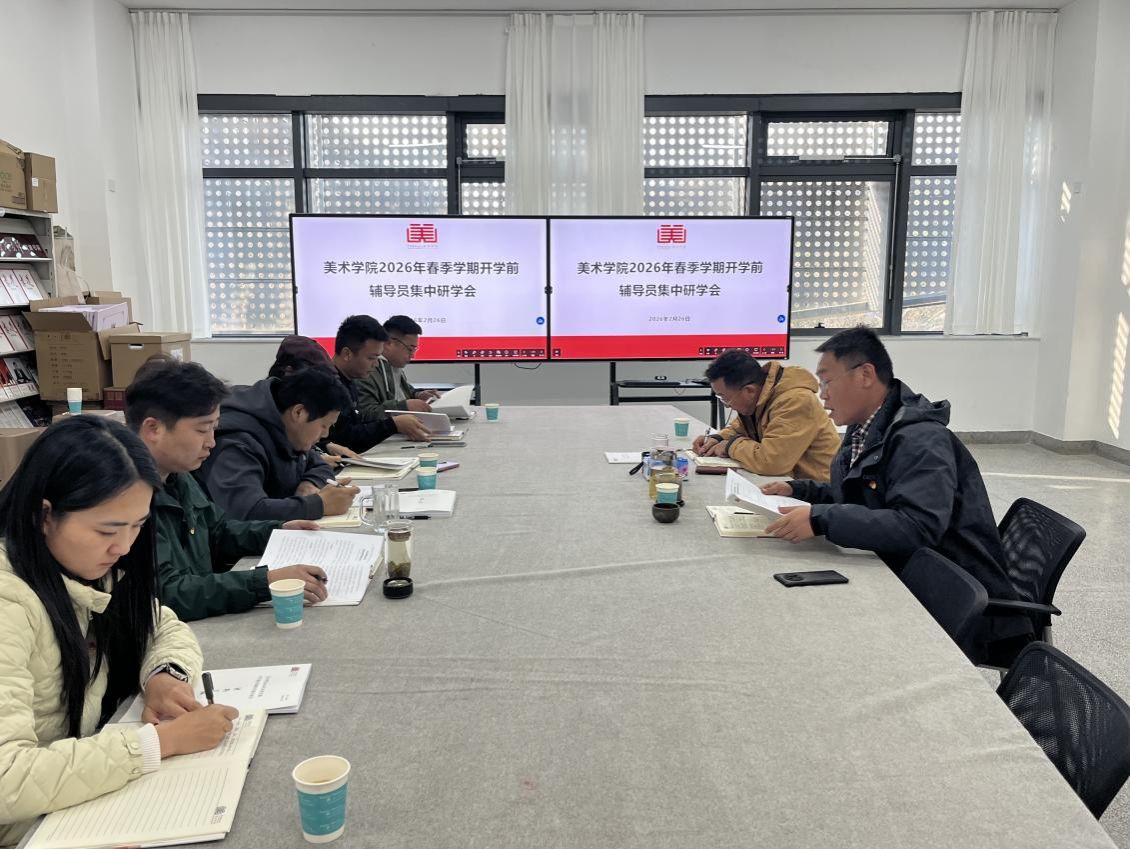 为深入学习贯彻习近平总书记关于教育的重要论述,全面落实立德树人根本任务,进一步加强美术学院辅导员队伍专业化、职业化建设,精准谋划2026年春季学期学生教育管理服务工作以及开学前各项准备工作,2月26日,美术学院召开“2026年春季学期开学前辅导员业务研学会”。美术学院党委书记、副书记和全体辅导员参加会议。会议伊始,美术学院党委副书记何君就开展集中学习交流进行动员讲话。动员结束后,全体人员集中开展理论学习,深学细悟习近平总书记在2026年春节团拜会上的重要讲话精神,...