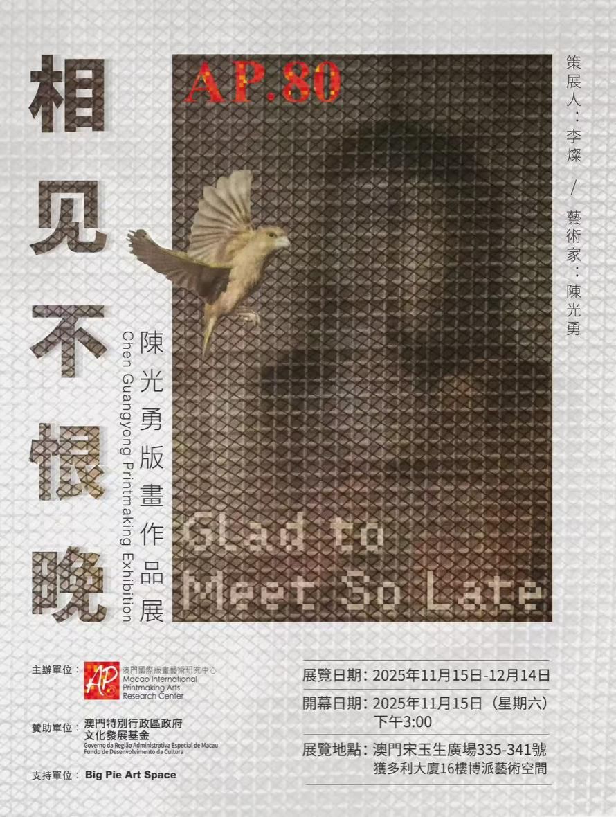 主办的澳门国际版画艺术研究中心 2010 年成立至今,办过 80 余场国际版画活动;此次展览既是陈光勇个人回顾,也是东西方版画、澳门与内地艺术的对话。策展人李灿认为,“相见” 是与时代、历史、自我的对话,陈光勇的艺术不追视觉喧嚣,而是引观者沉心体悟时间与生命。11 月澳门,走进博派艺术空间,在版画肌理中触见时间,这场 23 年艺术之约,相见从不恨晚。