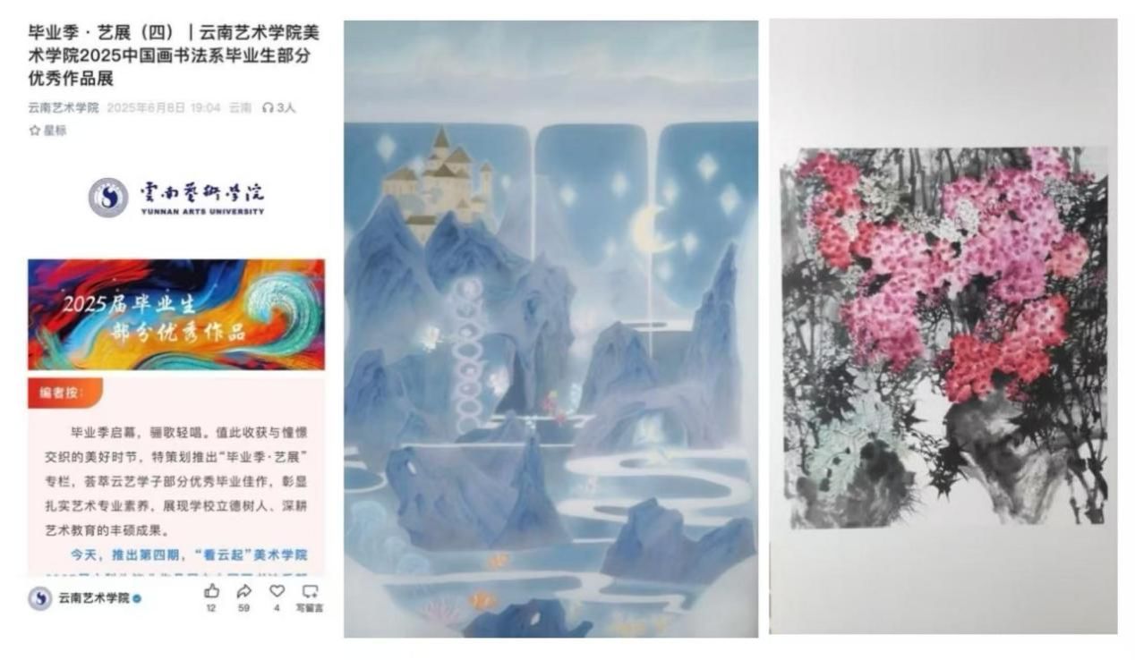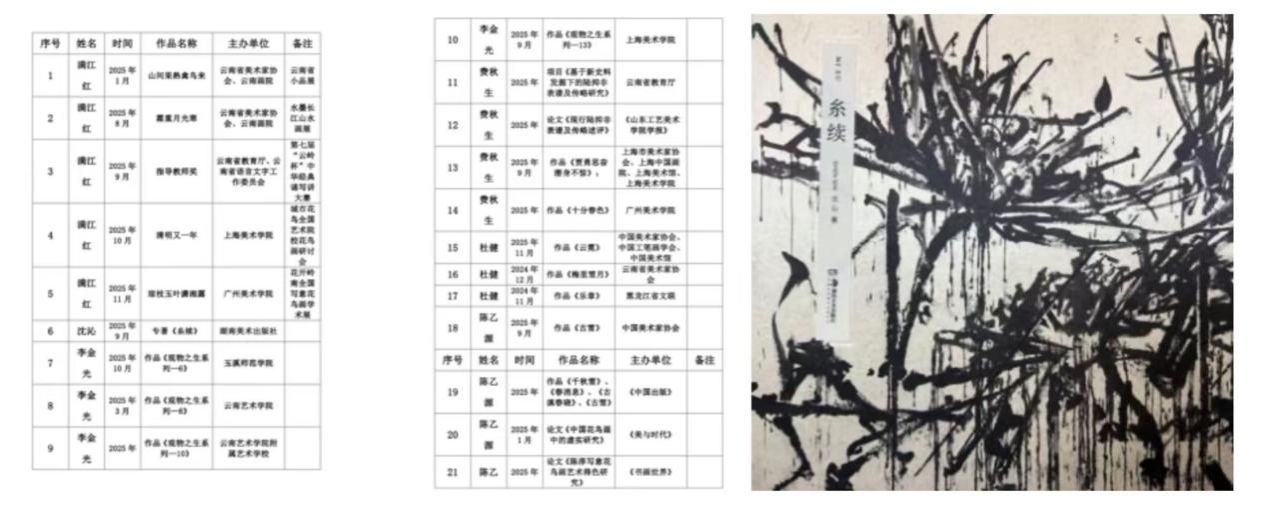 本年度,中国画专业教师参与了在上海美术学院和广州美术学院举办的花鸟画学术分享会,在参与其他高校举办的研讨会时,中国画专业教师也注重主动分享自身学术与创作成果,在交流中检验学习成效、梳理知识体系。全年的学术交流并非停留在“听与说”的层面,而是切实转化为推动自身专业发展的动力,在创作实践与学术研究中落地生根。中国画与书法系9月举办了首届中国画临摹作品展,受到了社会的广泛好评,深研传统,借古开今。11月系部老师参加交投集团与云艺纪委支部共建活动,探索纪律与艺术的跨界携手和校企协同育人。