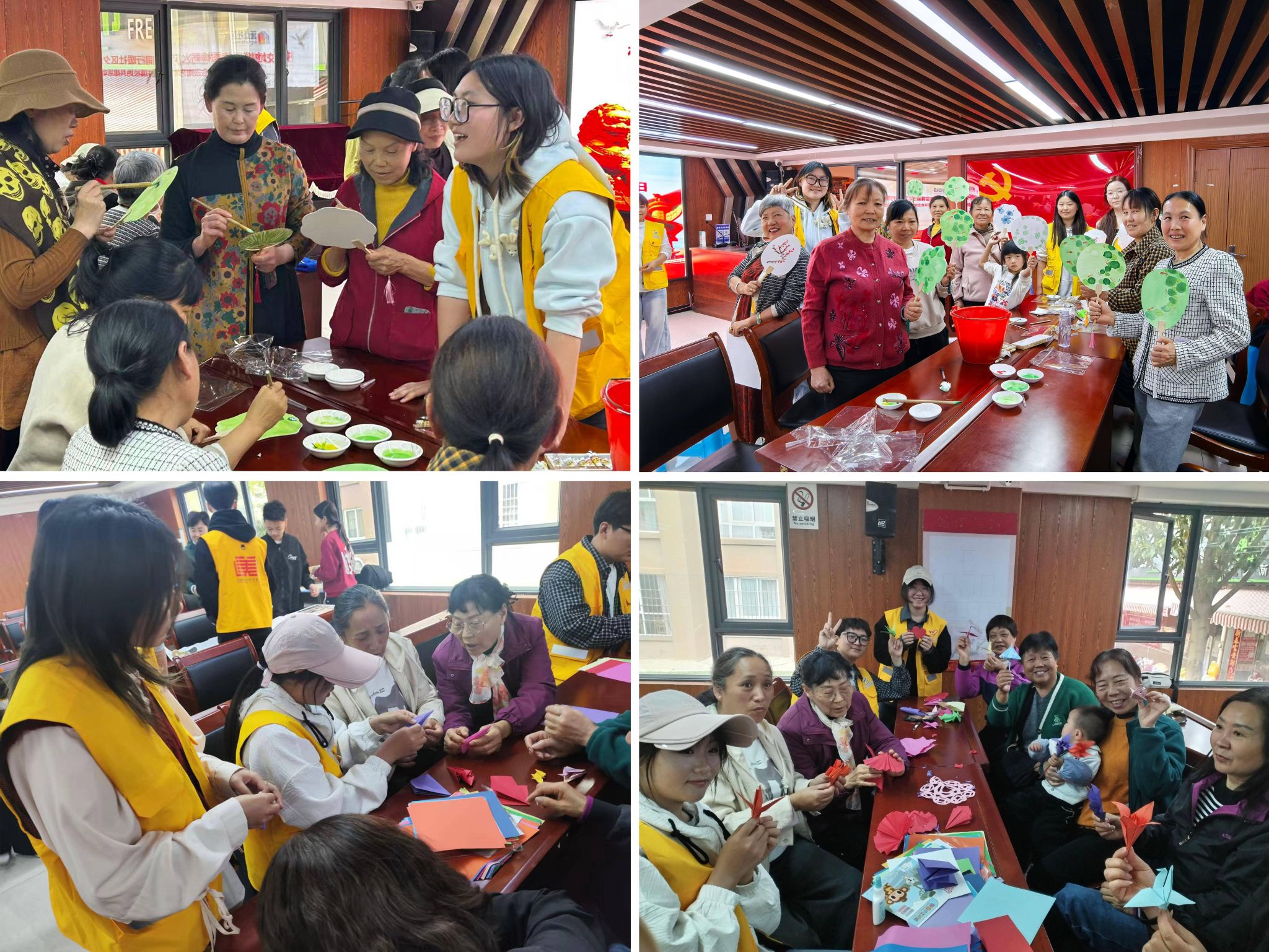 指尖作笔,颜料为墨,拇指画DIY中,居民们蘸色按压,将简单圆点化作灵动造型,代际温情在色彩碰撞中悄然传递;团扇绘制现场,大家调和墨色、勾勒线条,牡丹、荷花等图案跃然扇面,传统文化的种子在童真心灵中生根;趣味折纸环节,彩纸在老少手中折成马年小马、千纸鹤等造型,折痕间满是互帮互助的社区温情。