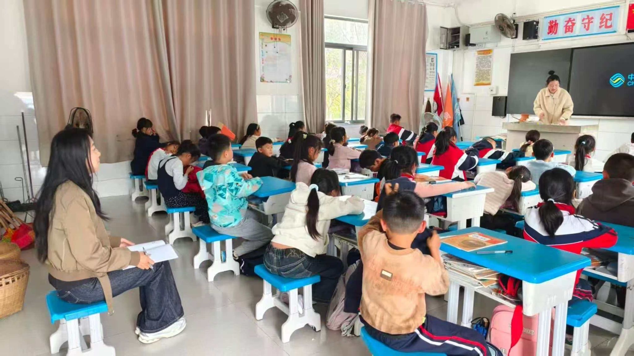派驻学生华雪媄在富宁县第三小学向一线教师学习美育课程