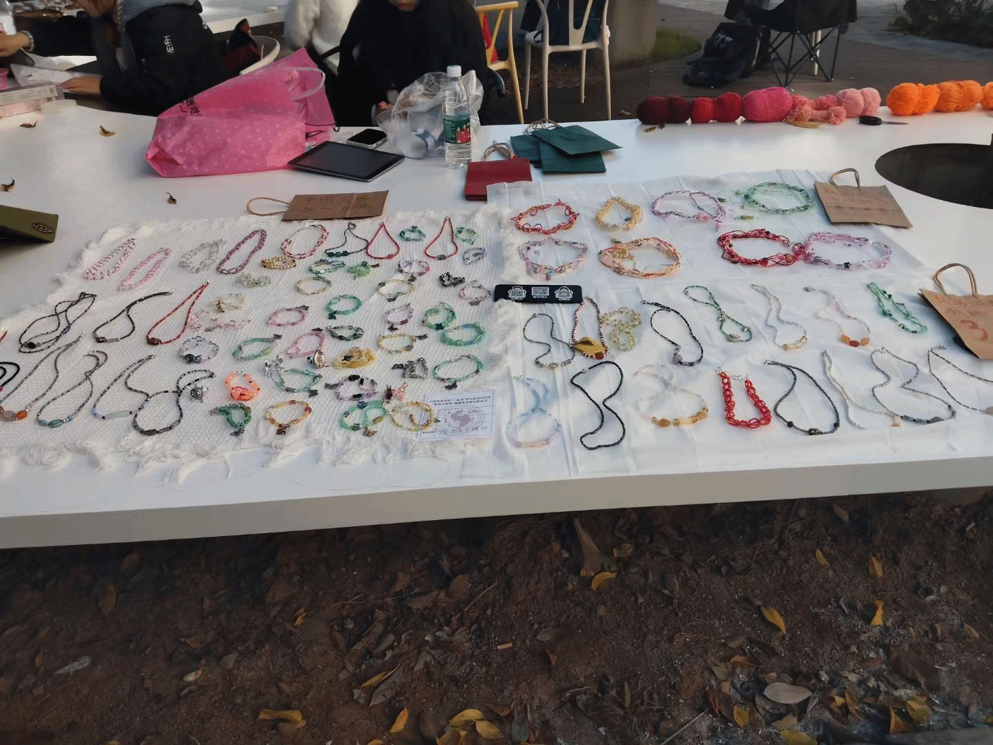 在活动互动体验环节,无论是绘画体验,还是手工艺品制作,都让参与者充分感受到了艺术的魅力与乐趣。大家沉浸其中,欢声笑语,独创的手工艺品更是受到师生青睐,成为集市上的热销品。