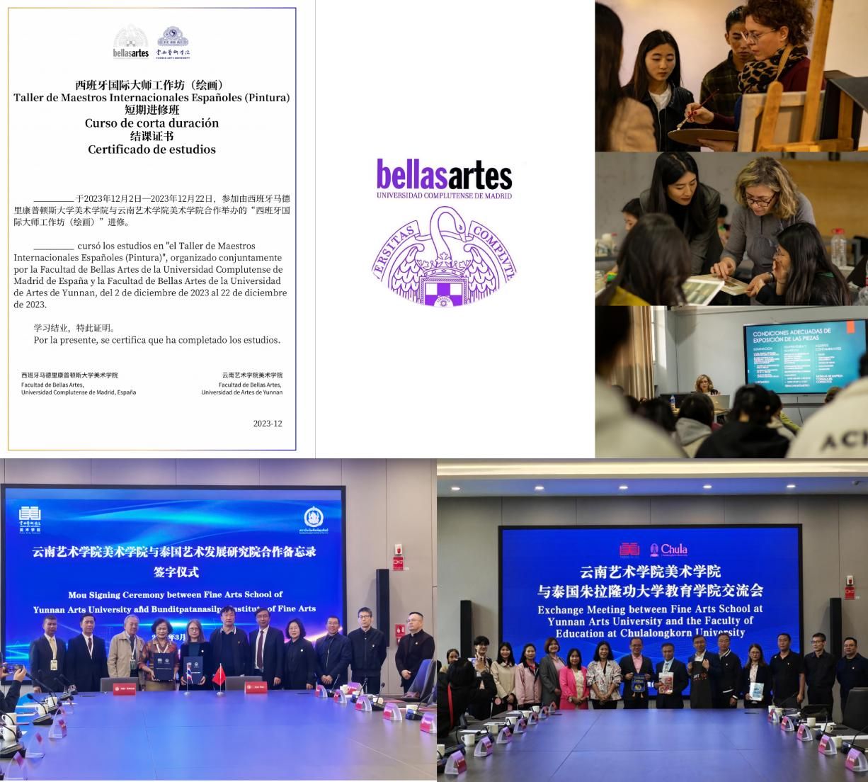 学院立足云南民族文化资源,服务国家战略和区域发展,已派驻5批师生赴富宁县、红河县开展“美育浸润行动计划”,为地方文化建设和社会发展作出了积极贡献。扎实开展三下乡、返家乡、乡村支教、志愿者服务等社会实践活动,多次获得“三下乡”活动优秀组织单位和优秀团队。同时,不断深化对外交流合作,开设西班牙国际大师工作坊(绘画)短期进修班、Otherwhere中德国际工作坊,与泰国艺术发展研究院、朱拉隆功大学等多所知名艺术院校建立了合作关系,开展学术研讨会、师生互访等多样的学术交流活动,组织展览及学术活动50余场,有效提升了学院在国内外的学术影响力和知名度。