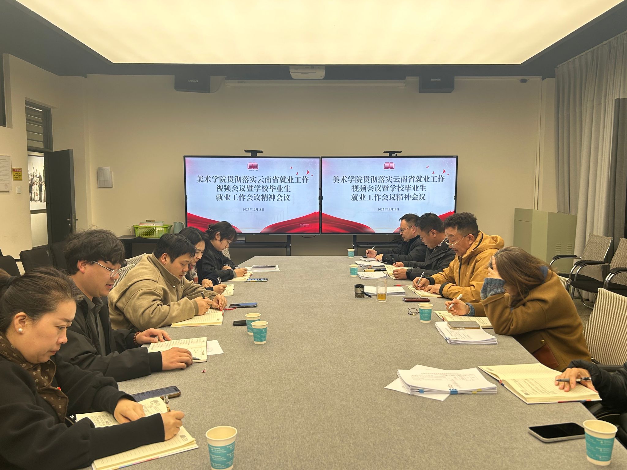 2025年12月18日19时,美术学院于221会议室召开专题工作会议,深入学习贯彻云南省就业工作视频会议暨学校毕业生就业工作会议精神,系统部署学院下一阶段就业工作。美术学院党政领导班子成员、办公室和毕业班辅导员参加会议。会上,学院党委副书记何君全面传达了两级会议核心精神与工作要求。云南省就业工作视频会议既对全省2025届毕业生就业工作成效进行了阶段性总结,也为2026届就业工作划定了重点方向;学校党委书记李建宇在后续召开的校就业工作会上强调,...